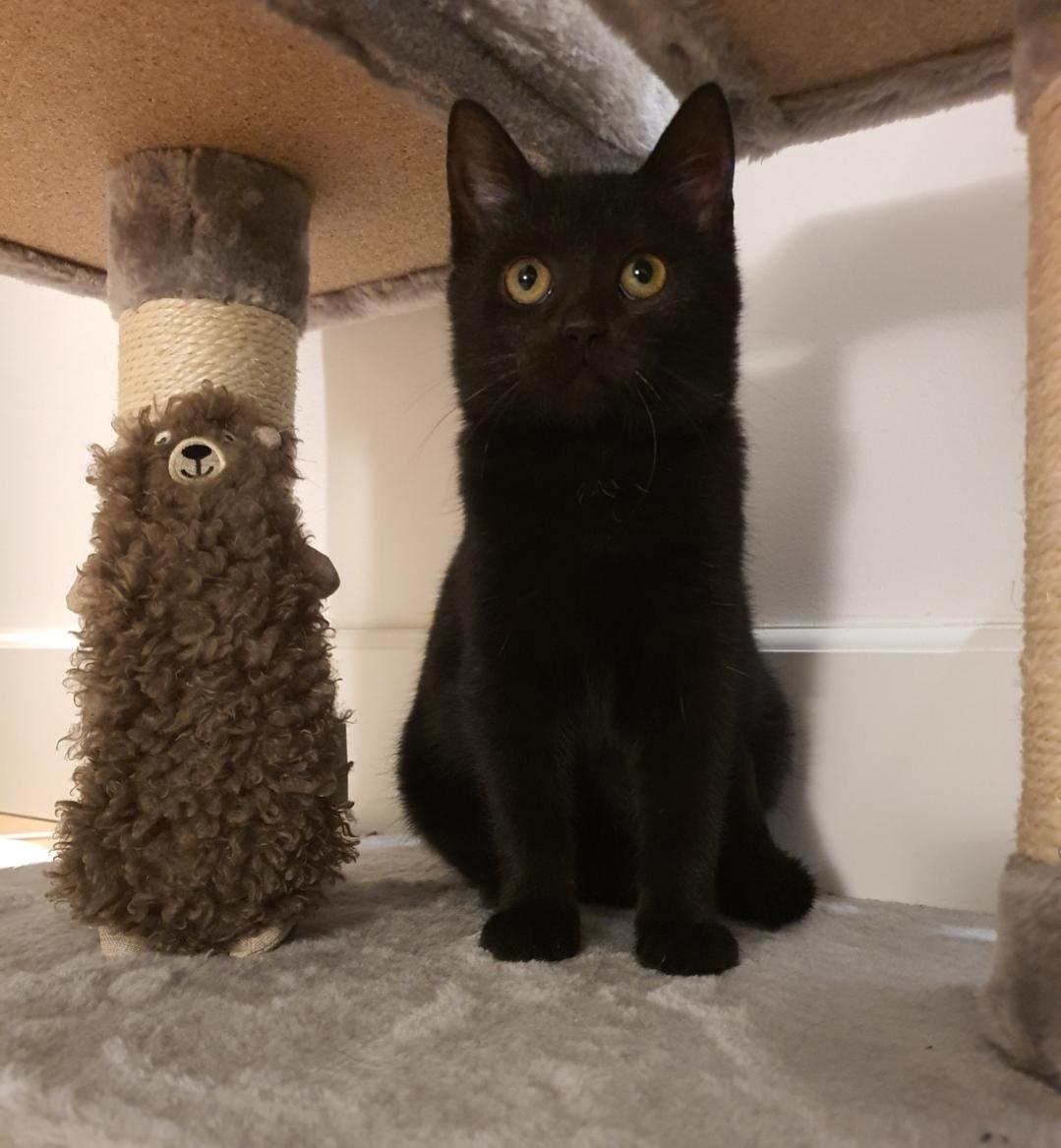 Ik ben gelukkig niet meer boos of bang en knor er inmiddels vrolijk op los als er met mij geflirt word. Ik hou van al die nieuwe aandacht en lekkere hapjes. Ik loop al moedig door de kamer en laat mij lekker aaien. Ik geef zelfs al uit mijzelf kopjes...