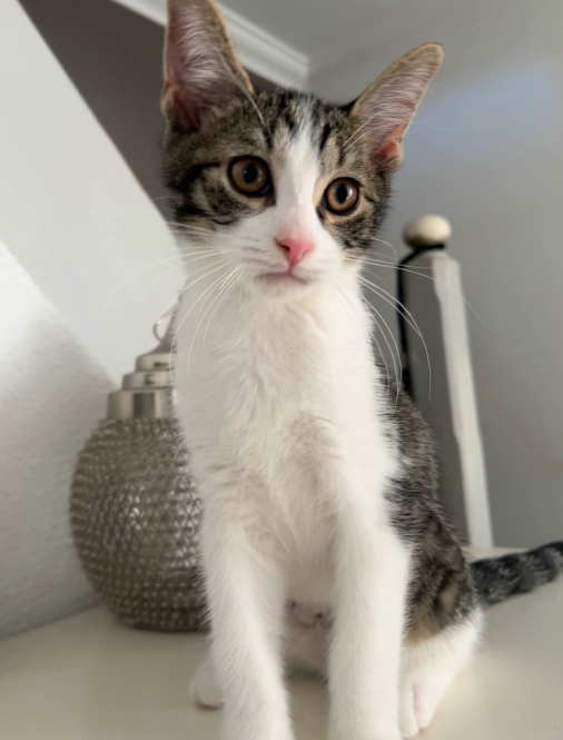 Mia is een rustige, zachtaardige moederpoes die geniet van aandacht en zachtjes spint en miauwt als je haar aanhaalt. Ze is met haar zachte karakter en geluidjes een echte tevreden knuffelkont.