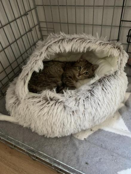 Ik ben Pip, gevonden op de hoek bij de visboer. Ik wist dat daar iets lekkers viel te halen. Maar eigenlijk was ik nog veels te klein om buiten alleen op avontuur te gaan. Daarom heeft Stichting Dakloos Dier mij van straat gehaald en bij een liefdevol gastgezin geplaatst. In het begin vond ik mensen nog erg spannend en werden mijn oogjes erg groot, inmiddels vind ik de mensenhanden toch wel erg lief en kom ik graag met je kroelen. Dan leef ik helemaal op en ik ga ook graag op avontuur en rondneuzen in mijn kattenkamer.